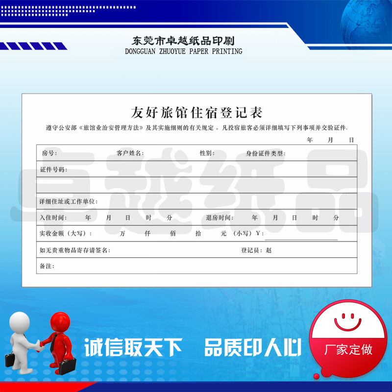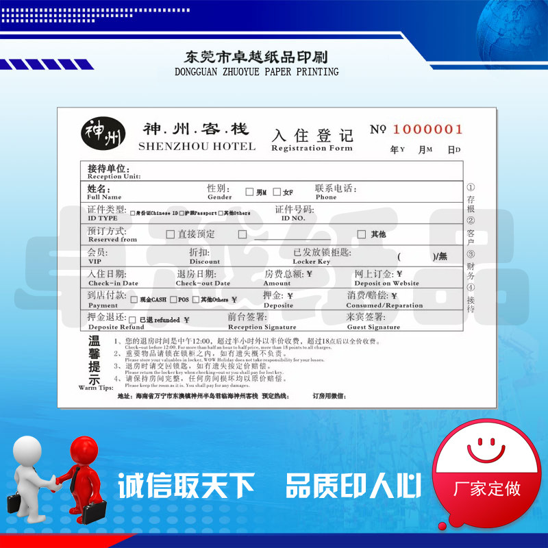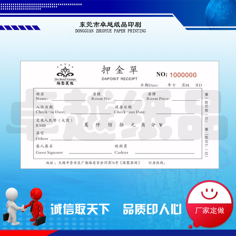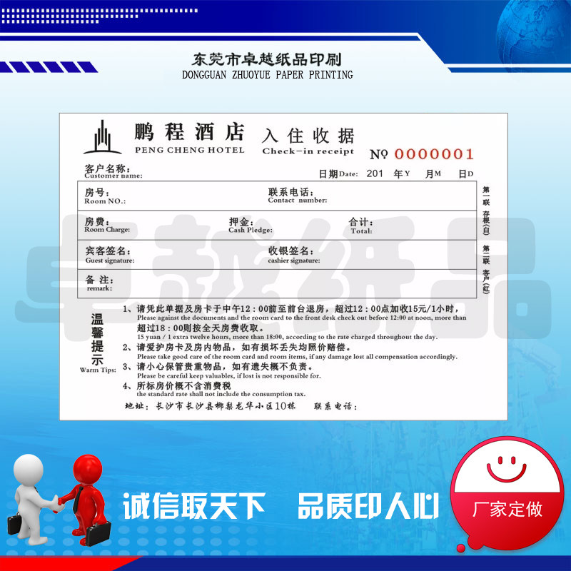 Hotel deposit order custom check-in registration form Joint single Printing receipt custom machine bill two three