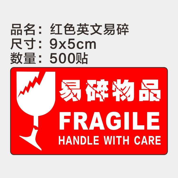 Red English fragile red English fragile label stickers Taobao warning stickers self-adhesive spot express