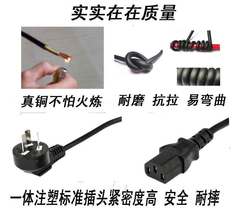 National standard power cord three-hole high-power pure copper 3-core 1 5 square 1 8 3 meters character word connection computer plug line