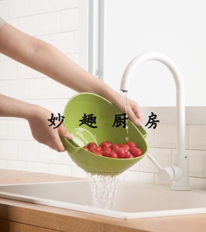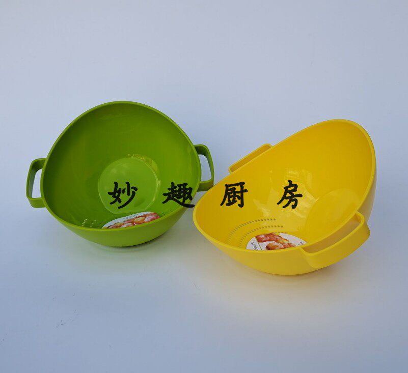 Tea Flower Double Stand Screen Vertical Double Handle Wash Rice Screen Kitchen Drain Basket Wash Vegetable Basket Fruit Wash Basket A35002