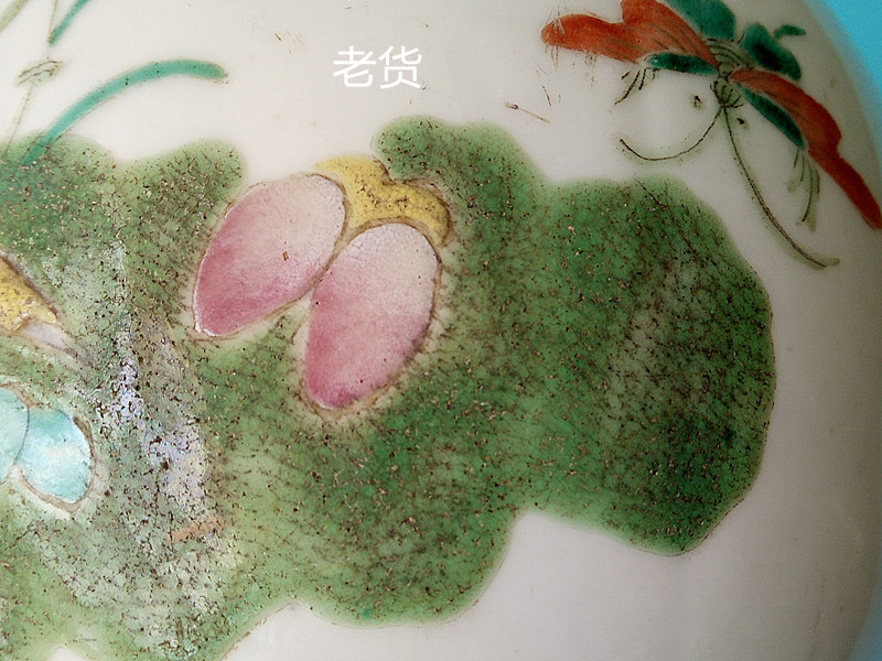 Bag old bag genuine products Qing Dynasty old porcelain bottom Official Kiln made of Tongzhi Pink Butterfly Pumpkin Jar full pint open door