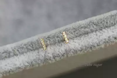 Sugar cube mini pure 10K real gold K gold micro-inlaid small diamond gold stick Small gold rod ultra-exquisite mini small ear needle