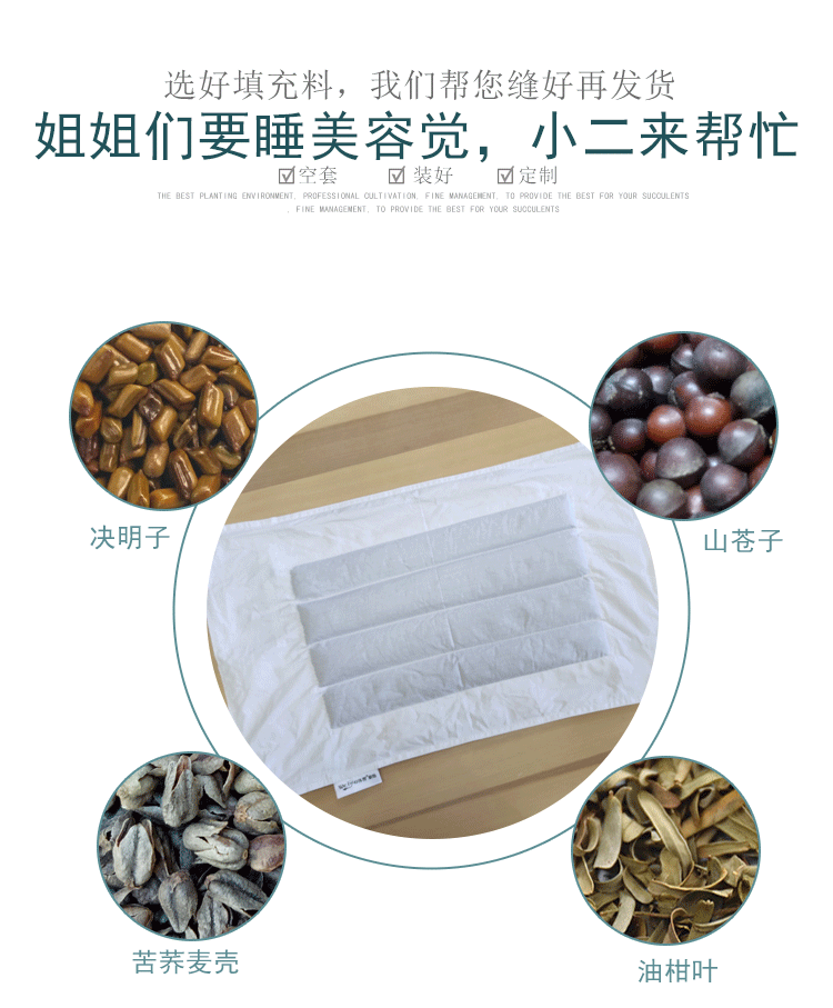 Composite empty set 1 filled with cassia seed filled with tartary buckwheat husk filled with oily mandarin leaves