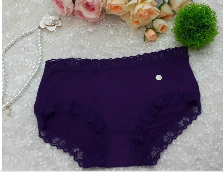 Urban underwear women's mid-waist large size fat mm seamless lace briefs head modal pure cotton beauty