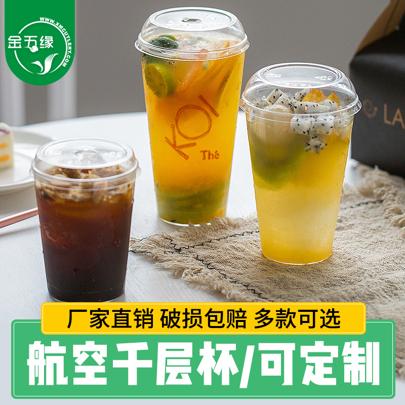 Jinwuyuan 300ml disposable milk tea cup aviation cup large drink juice cup thousand layer custom hard plastic cup