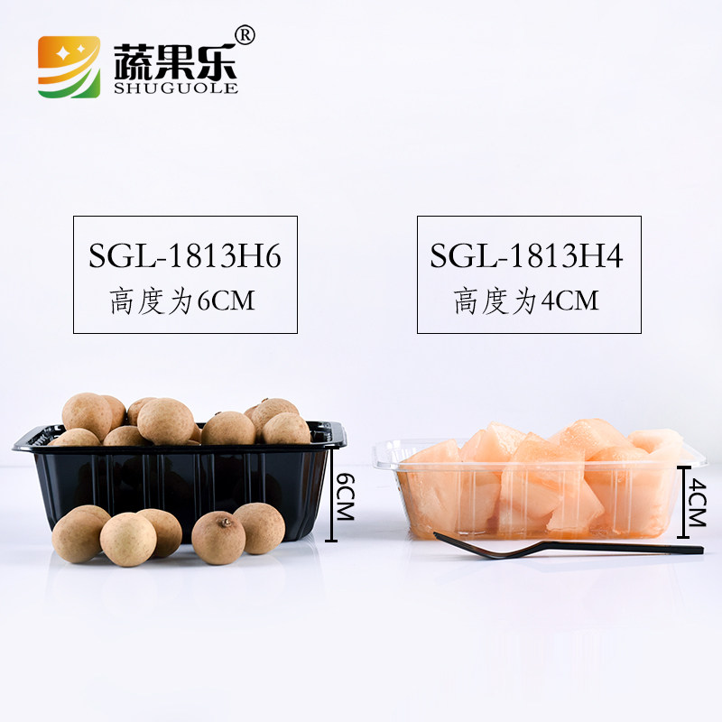 Fruit and vegetable music 1813 disposable transparent small tomato strawberry fruit and vegetable tray Fruit cutting box Supermarket one pound