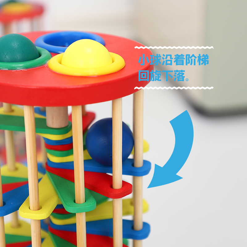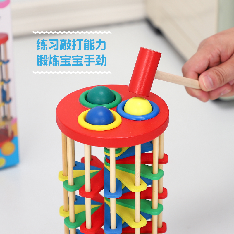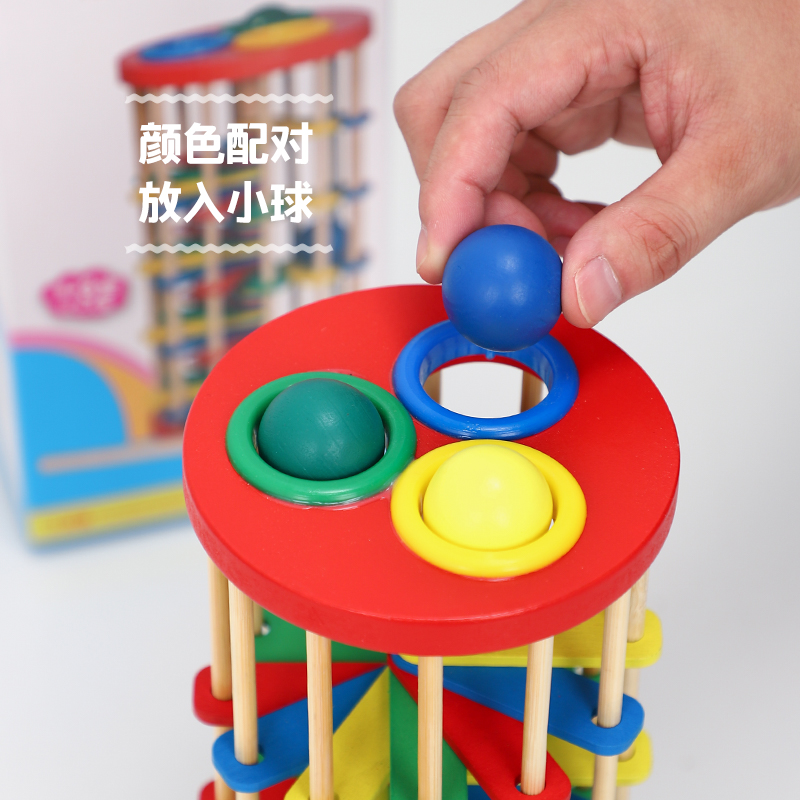 Wooden knockout billiards drop ladder rollaway billiards baby children's puzzle toy 1-3-6 Early taught hands-on knockout pile-Taobao
