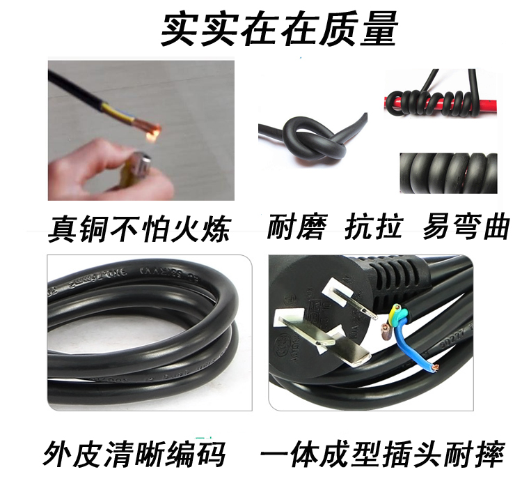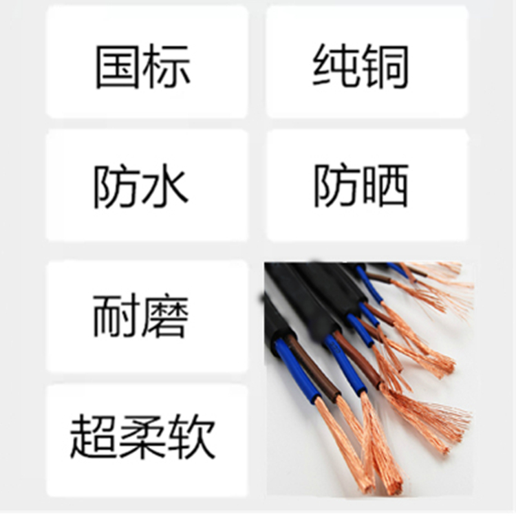 National standard three-core power cord with plug 1 square 1 8 3 5 meters three-hole pure copper high-power connection line plug line