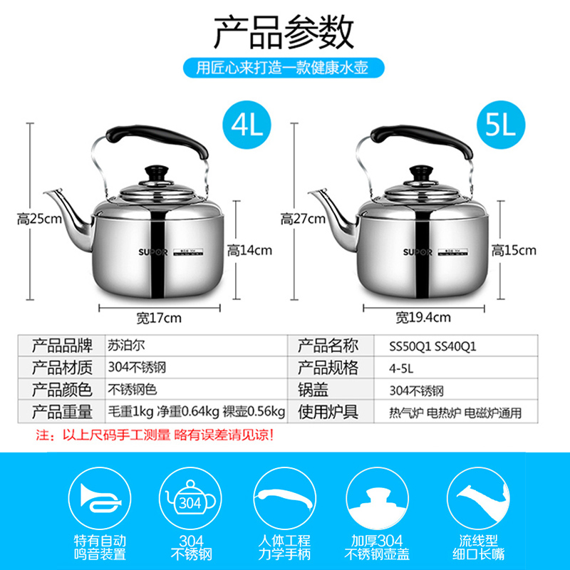 Suber kettle 304 stainless steel whistle open kettle large capacity gas household induction cooker gas universal