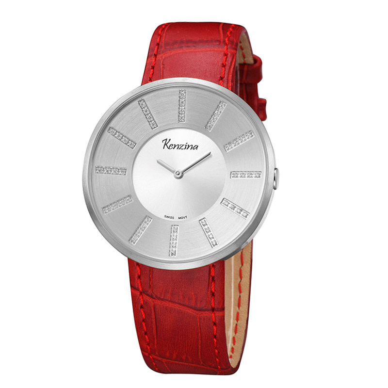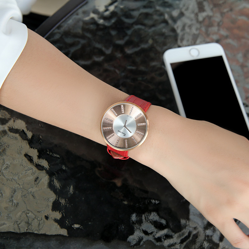 Rose gold black leather strap silver shell white face blue strap silver shell black leather strap silver shell white face green belt silver shell white face red leather strap silver shell black face red leather strap
