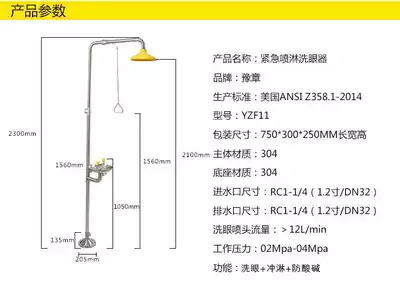 Eye Wash Stainless Steel 304 Vertical Emergency Spray Device Rinse Eye Wash Laboratory Stainless Steel Eye Wash