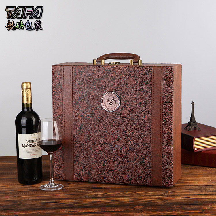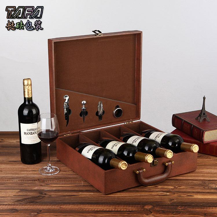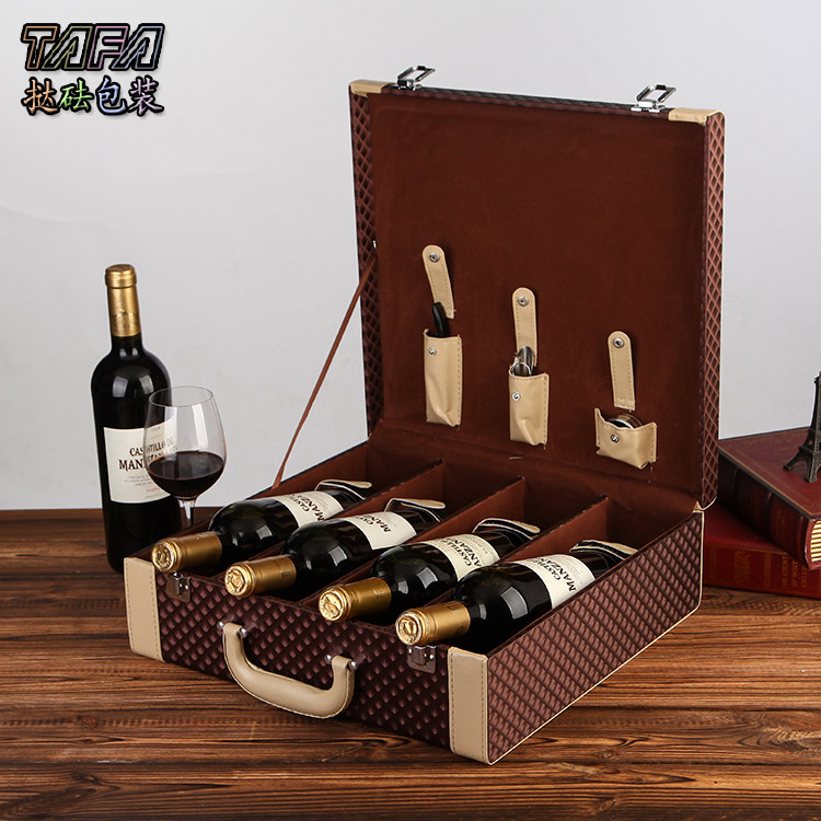 Leather box red wine leather box packaging box wine gift box double four 4 pieces leather box universal gift box