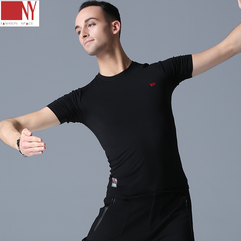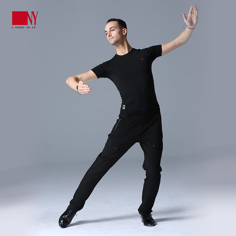 Na Yi new version of modern dance man top black short-sleeved dance suit National standard dance man fashion comprehensive training suit