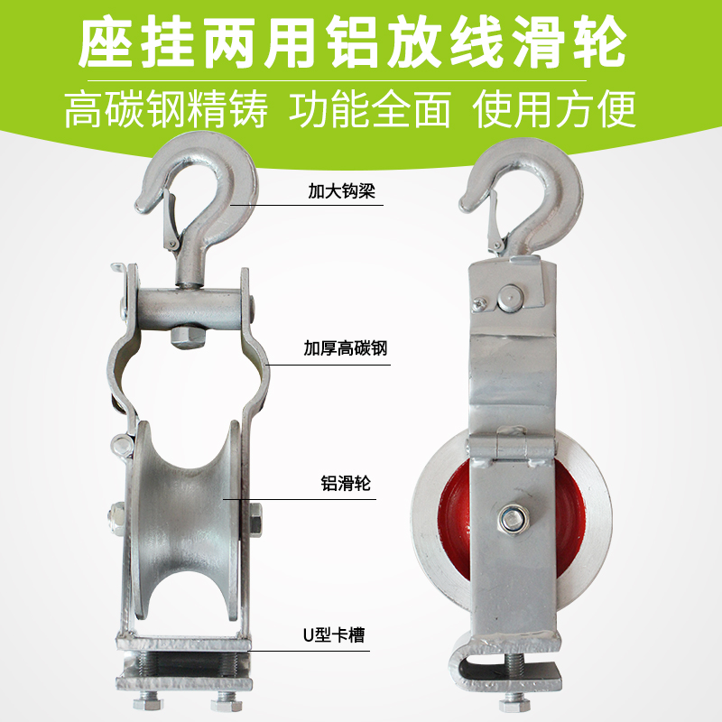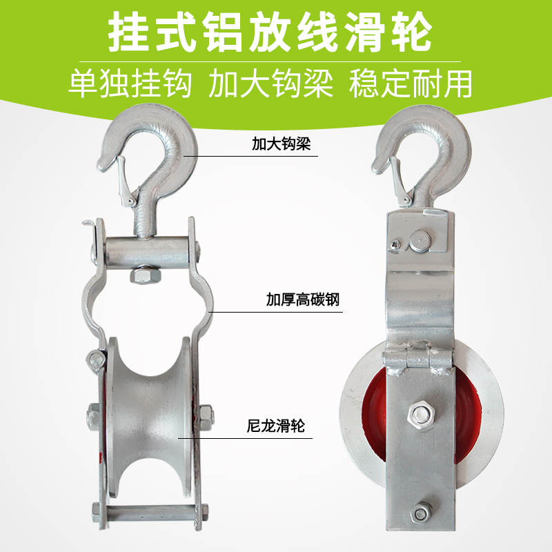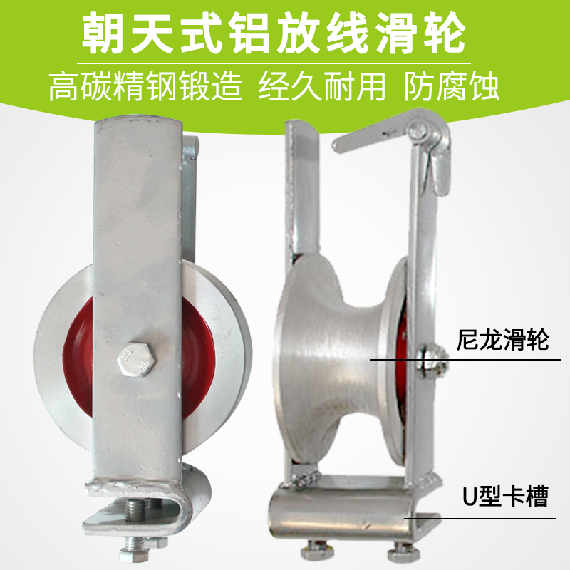 Pay-off pulley aluminum wheel seat-hanging dual-purpose hook-type pay-off pulley facing the sky factory direct aluminum