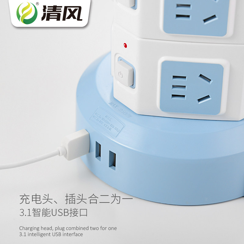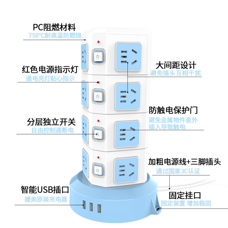 Wind-wind vertical socket household plug-in wiring board multifunctional with USB cube plug wire creative trailer
