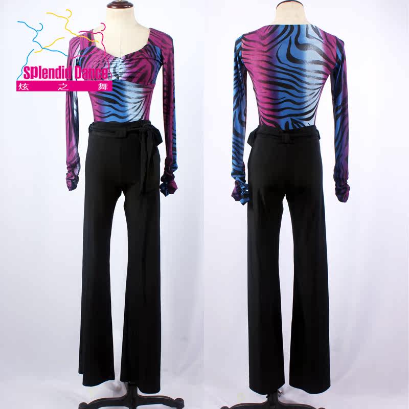 Dazzling dance with hip and legs long Morden Latin 2 with pants Morden dance blouses and training to wear the suit.