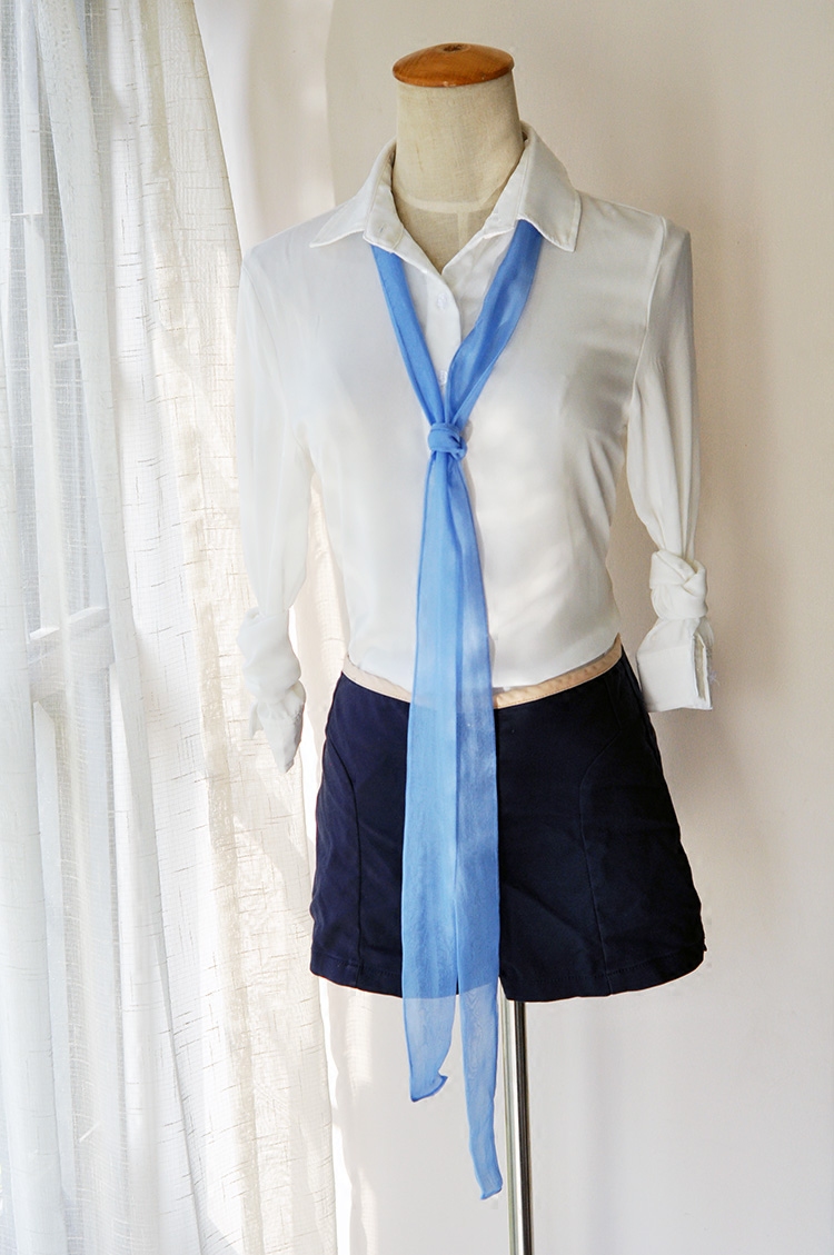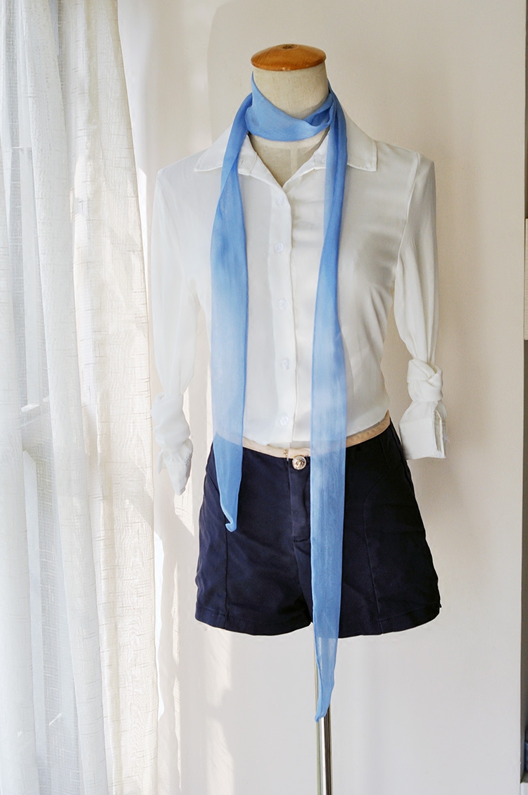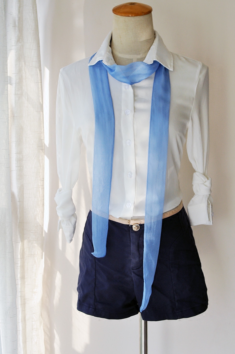 Summer silk ultra-long tissue belt small scarf with Korean version of sand silk shallow blue narrow silk scarf thin female
