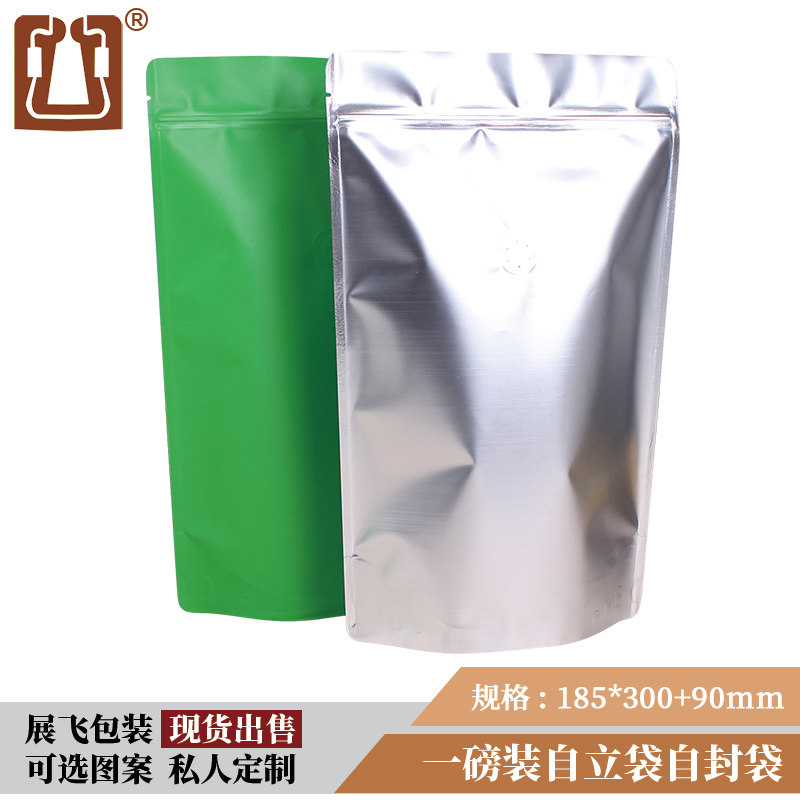 One pound coffee bag 10 aluminum foil self-supporting self-sealing bag Can be customized one-way valve coffee bean bag