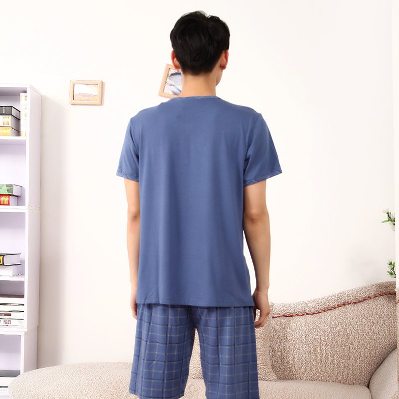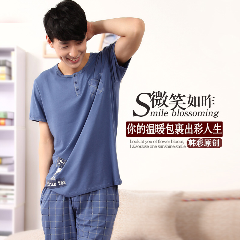 Korean color men's Modale cotton short sleeve shorts Home suit Summer thin section Monaire round collar pyjamas youth