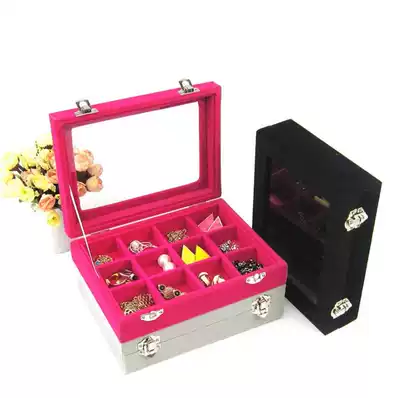 Gray 12-grid Red 24-grid icy velvet ring jewelry box with glass cover ear pin eardrop jewelry box