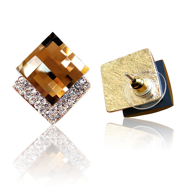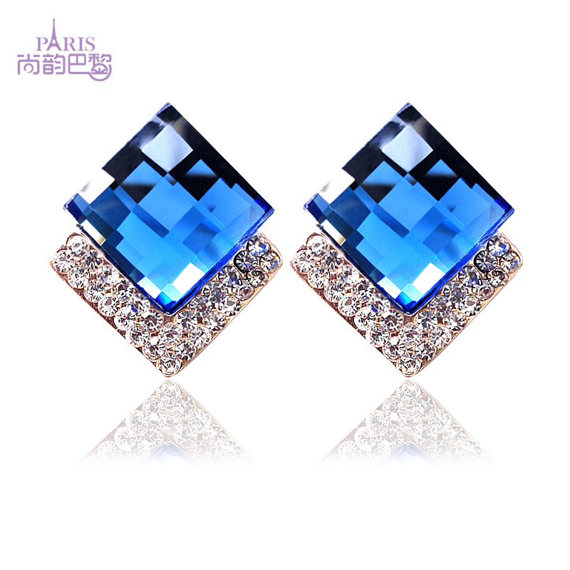 Korean version of the square sapphire earrings fashion atmosphere large earrings diamond-shaped bridal earrings white-collar temperament blue and black ear clips