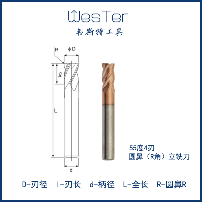 West 55 degree 4 blade Tungsten steel milling cutter Round nose cutter coating Alloy CNC CNC 1-12mm