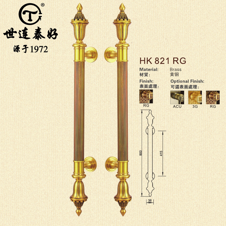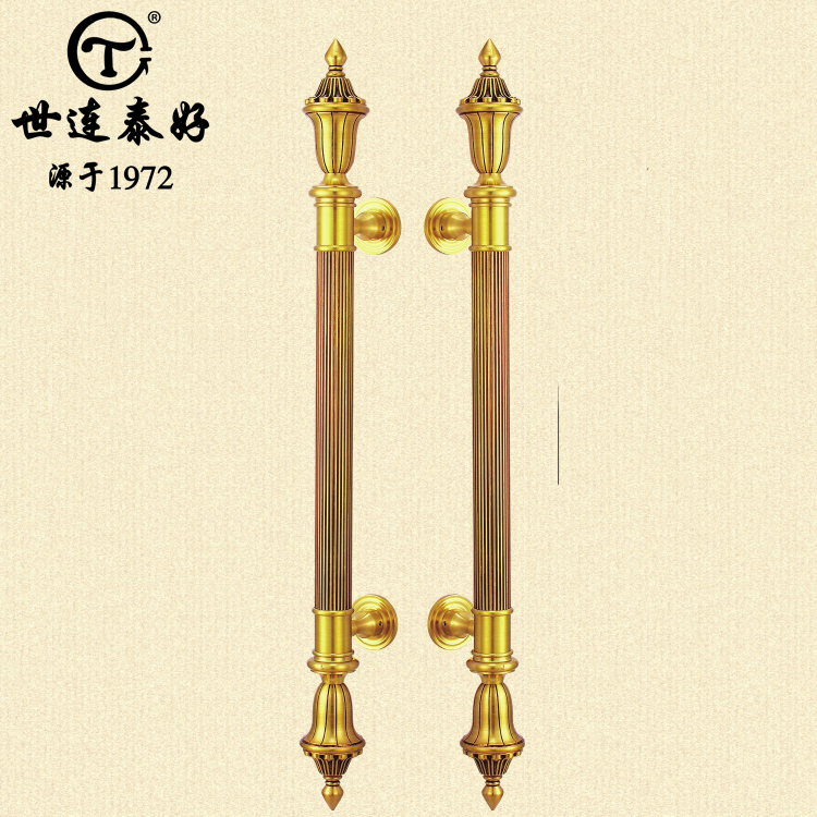 Shilingtai good copper European solid wood door handle glass door handle pure copper pair open door door open door handrail handle