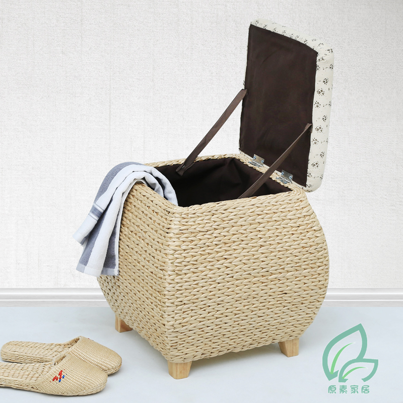 Changing shoes stool storage for sitting stool rattan choreography containing stool covered fields Sitting Box Art Style Handcrafted Grass-to-stool