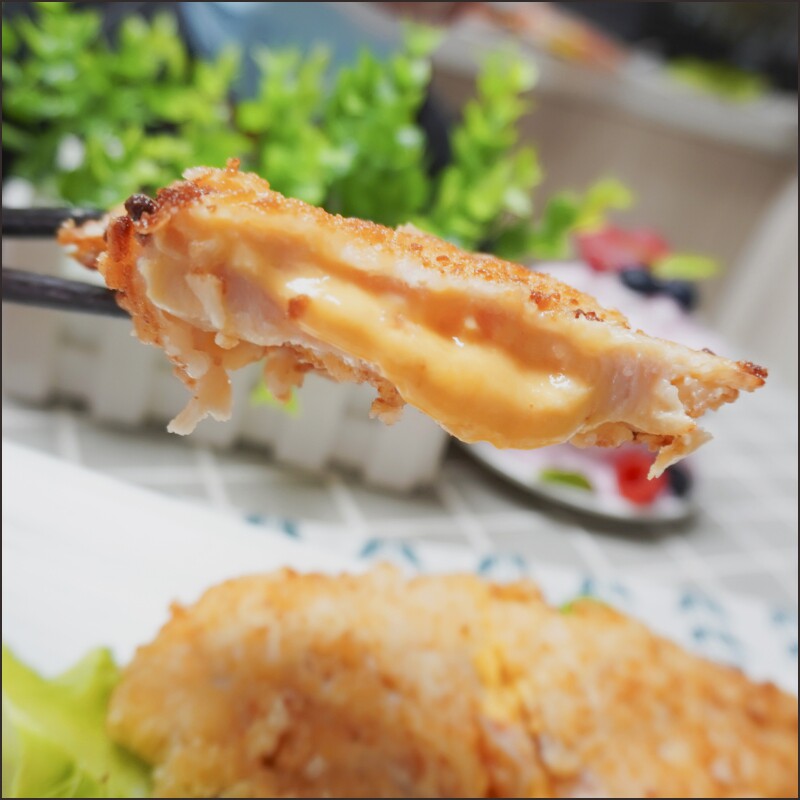 Chicken breast, water, starch, wheat flour, cheese slices, etc.