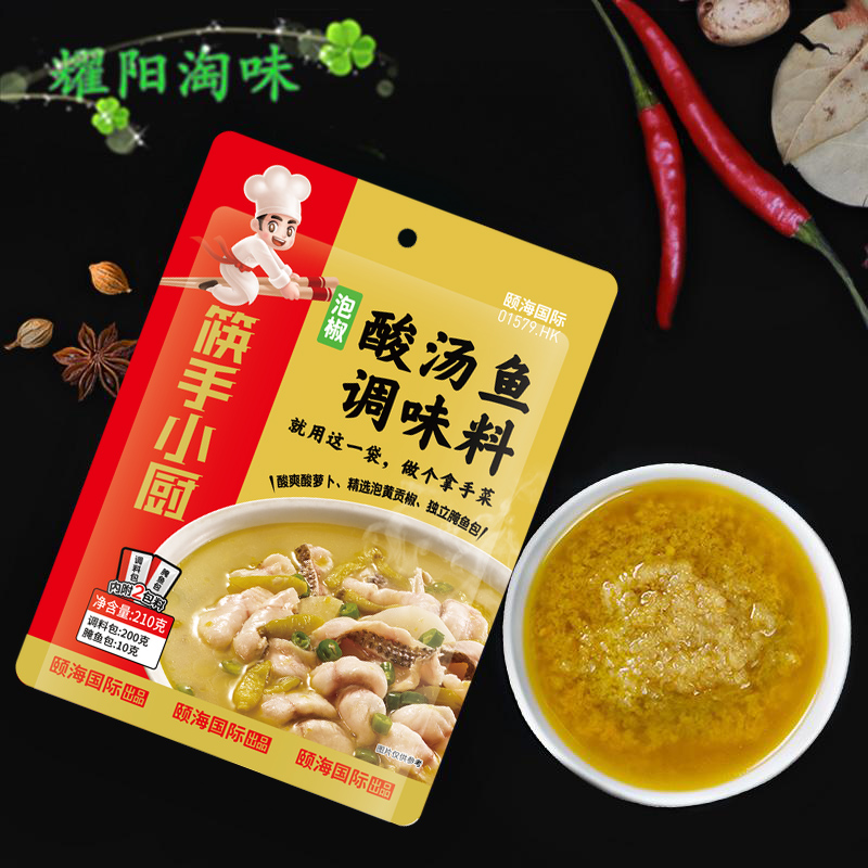 Haidilao pickled pepper sour soup fish seasoning 210g authentic Sichuan fish hot pot seasoning hot and sour soup sour soup fat beef seasoning