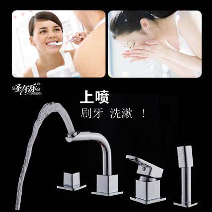 Brass four-hole desktop two-piece bathtub shower faucet shower set washbasin basin double-use porous faucet