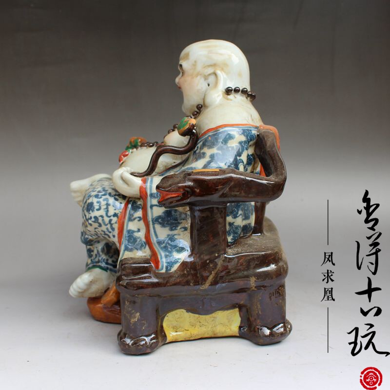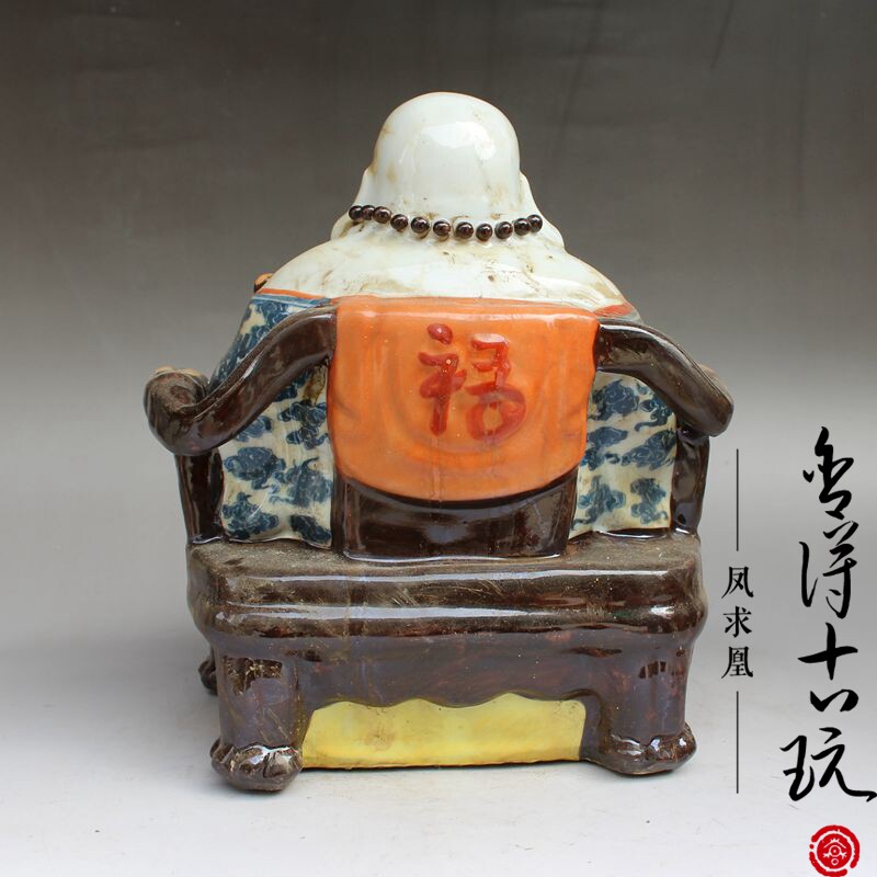 Willing to antique Jingdezhen blue and white seat Ruyi cloth bag Arhat Buddha statue home decoration to make old craft ornaments