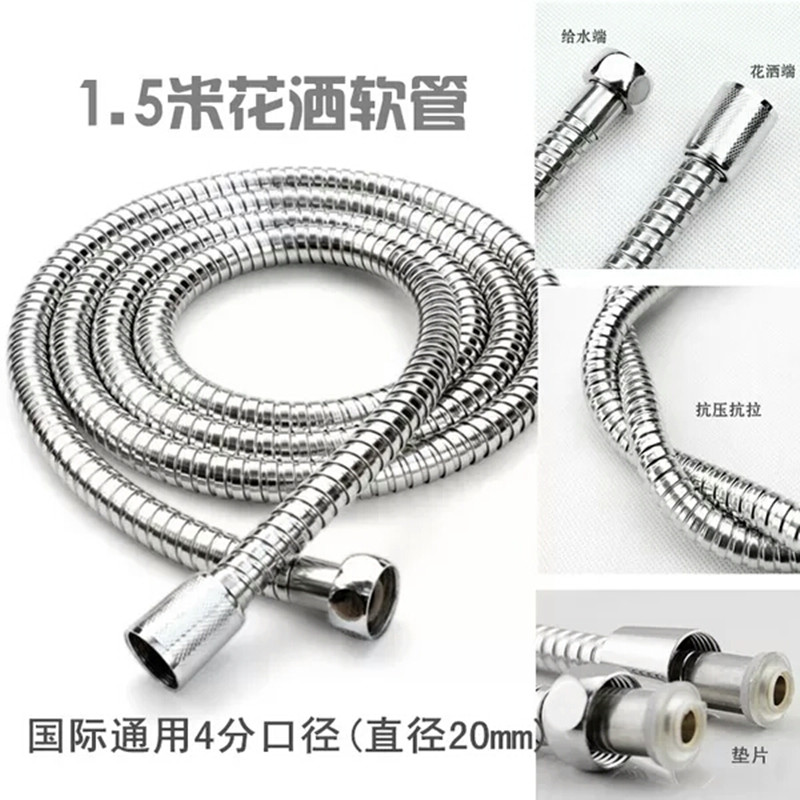 Bathroom stainless steel shower shower hose nozzle hotel family universal copper core zinc cap double buckle 1 5 m accessories