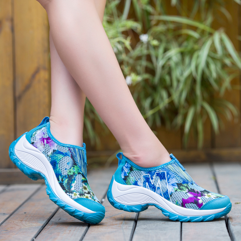 Middle-aged and elderly shoes, mother shoes, wedge health shoes, breathable mesh sleeves, soft soles, casual sports shoes, women's summer travel shoes - Taobao