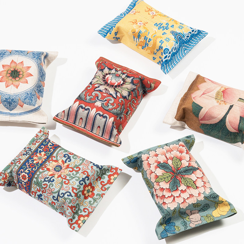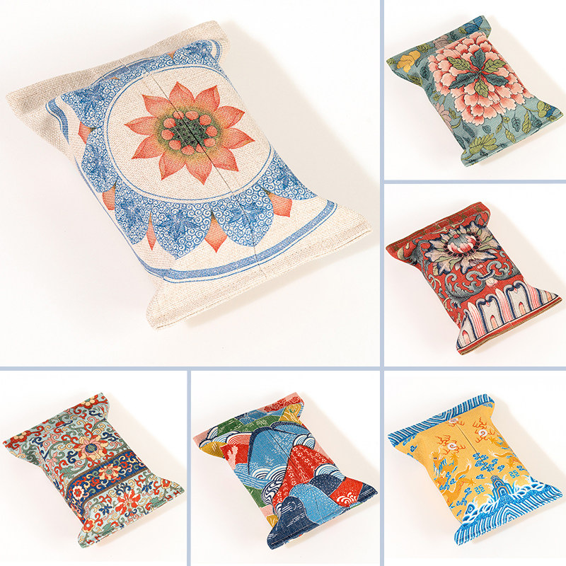 Small Cotton and Linen Tissue Box Living Room Tissue Cover Japanese Tissue Bag Removable Toilet Paper Box Chinese Removable Toilet Paper Bag Removable Toilet Paper Bag Fabric Art