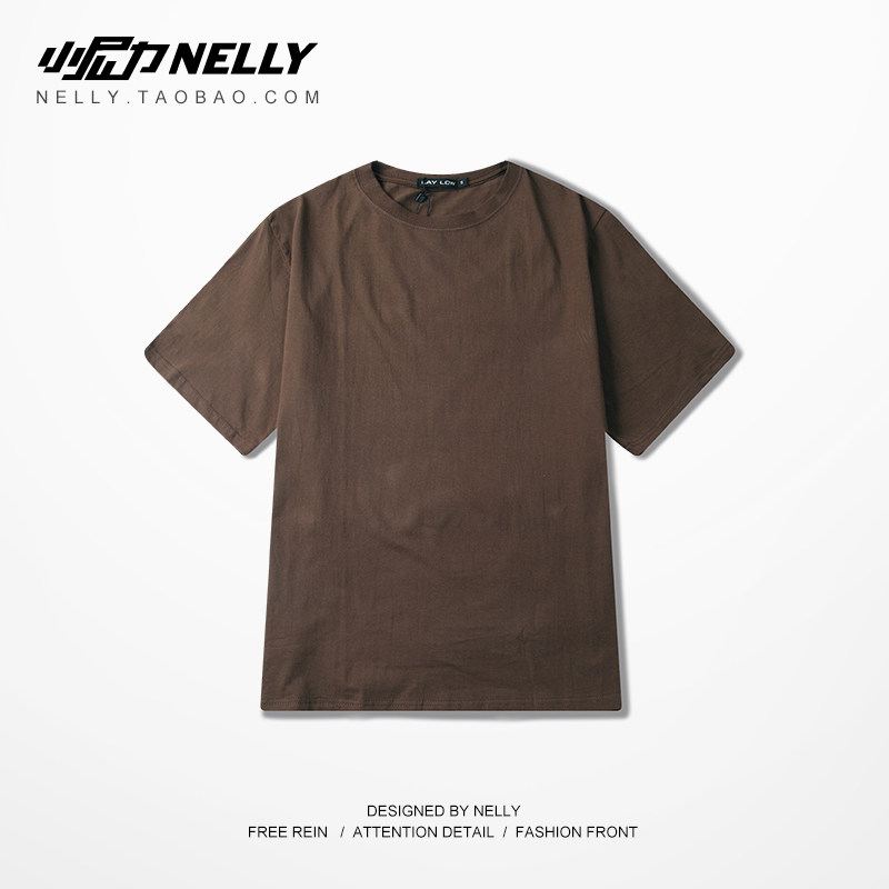 High Street Dark Half Sleeve Solid Color Drop Shoulder Men's Medium Sleeve Short Sleeve Thin T-Shirt OVERSIZE Men's and Women's Same Style Three-quarter Sleeve