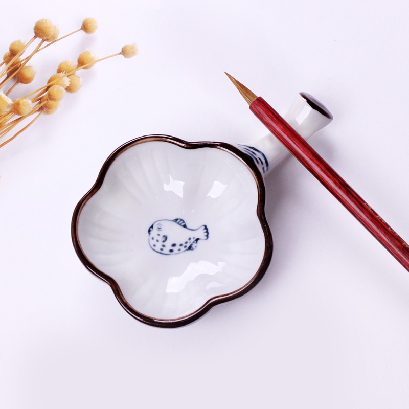 Yongxing 4-inch small ink-stone inkstone Ancient Wind Ink disc Ceramic Ink Pool brush holder Ink Box Calligraphy calligraphy Multi-functional creative pen shelf Mountain Wenfang Four-treasure suit pen Juice Ink Water Saucepan Beginscholar Student Supplies