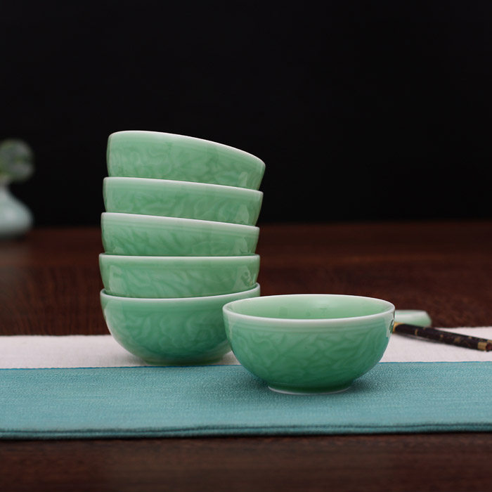 Bowl Ceramic Rice Bowl Household Longquan Celadon Bowl Set Creative Microwave Tableware 4 25 Inches