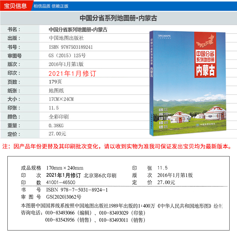2021 new version of Inner Mongolia Atlas Political area topography Geographical overview Map and Haote city detailed map Traffic tourism information City, county and township map China sub-province series atlas Inner Mongolia self-drive tour