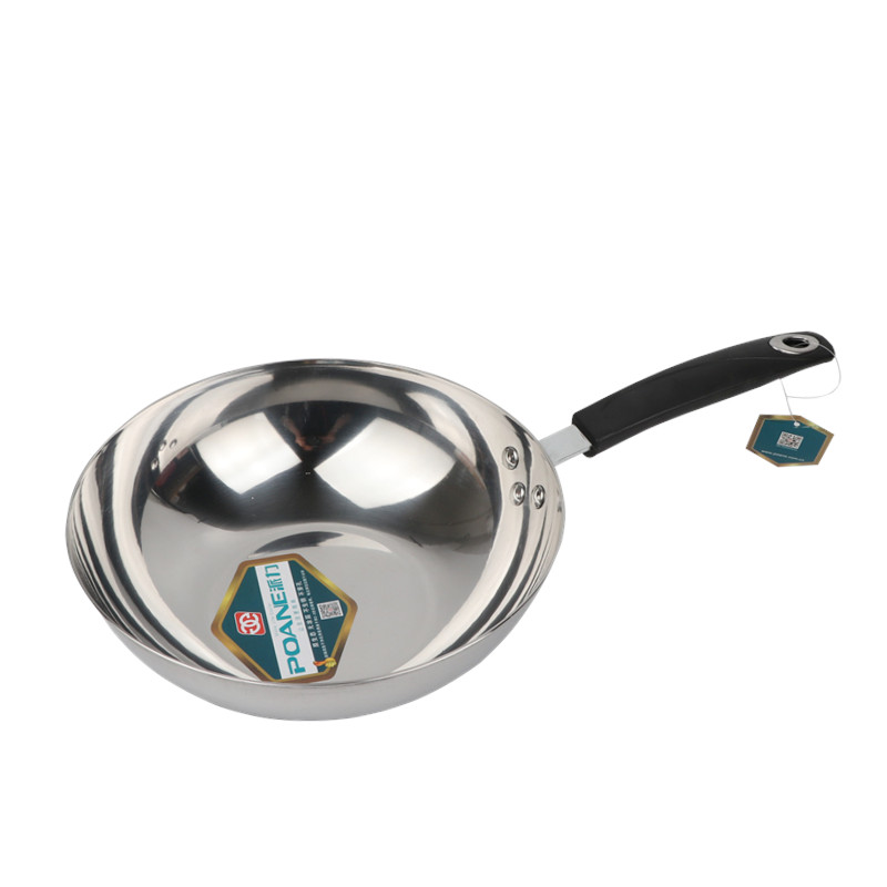Perry stainless small wok real stainless iron wok baby wok 26CM28CM wok frying pan with lid frying pan