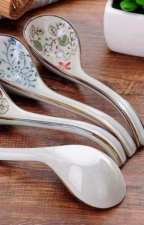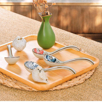 Japanese and wind medium spoon ceramic spoon long handle children spoon creative tableware