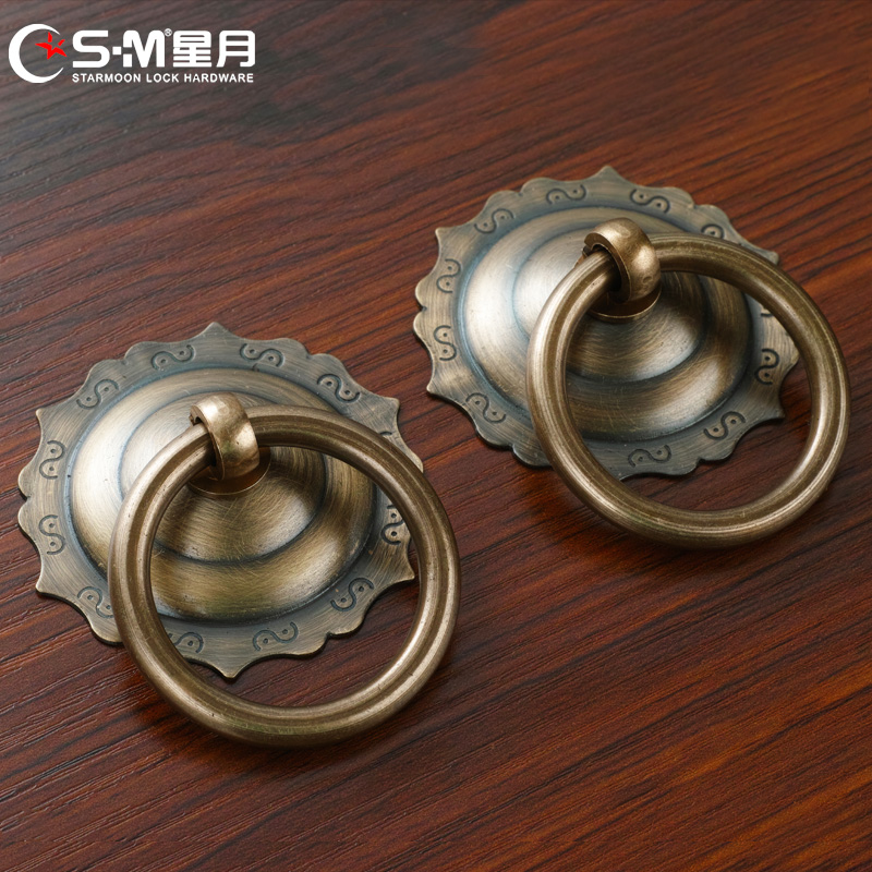 Chinese Ming clear drawer handle imitation ancient wardrobe handle cabinet door handle pure bronze classical handle pure copper retro pull ring
