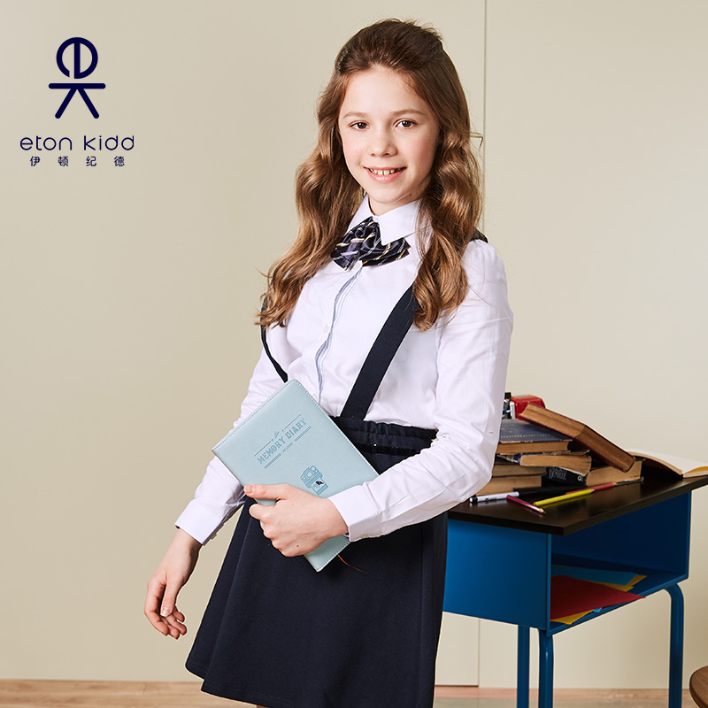 Eaton Gide school uniform white shirt cotton primary and secondary school students college dress spring and autumn girls long-sleeved shirt 16c256
