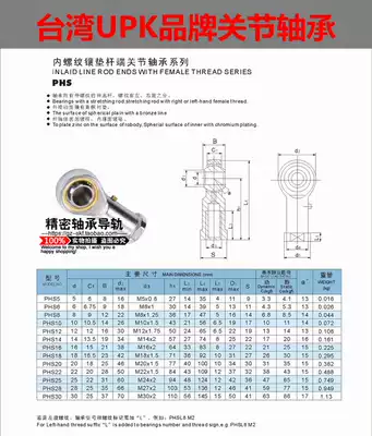 Taiwan UPK joint bearing PHS (domestic model SI) rod end joint fisheye cylinder joint ball head bearing