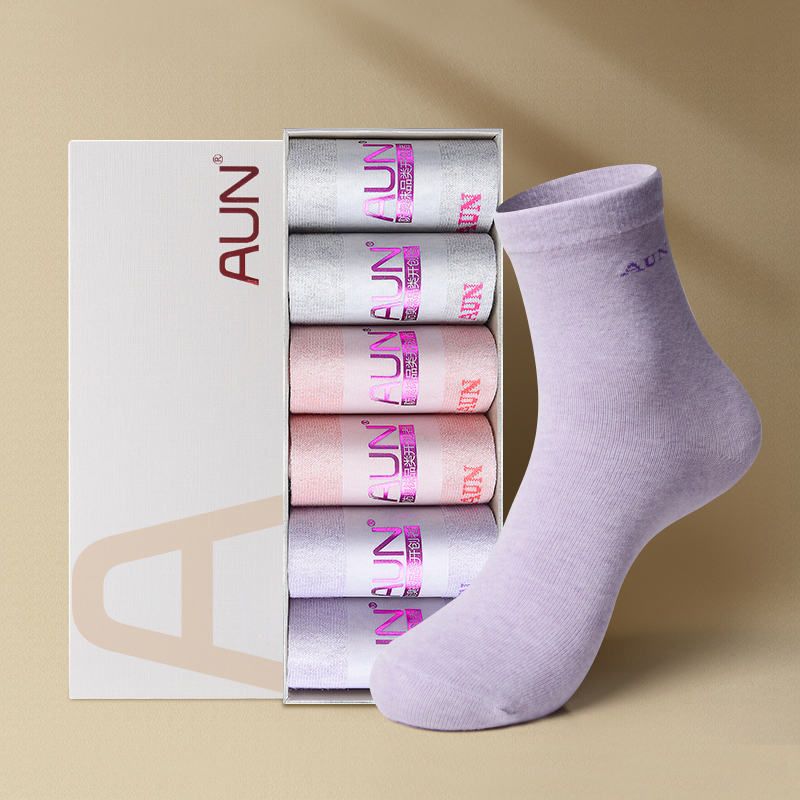 AUN Love Ueng Spring Autumn Season Middle Cylinder Girls Socks Ins Surge Pure Color Cotton Socks Antibacterial Deodorant Warm Suction Perspiration Long Socks