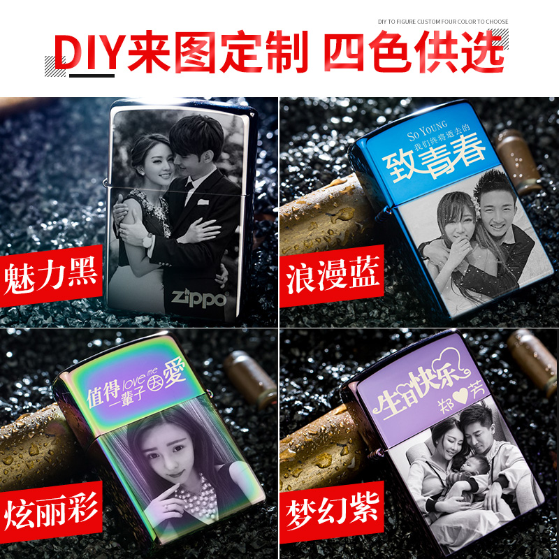 Original zippo Lighter Black Ice diy custom anime photo lettering zppo Men's kerosene Lighter