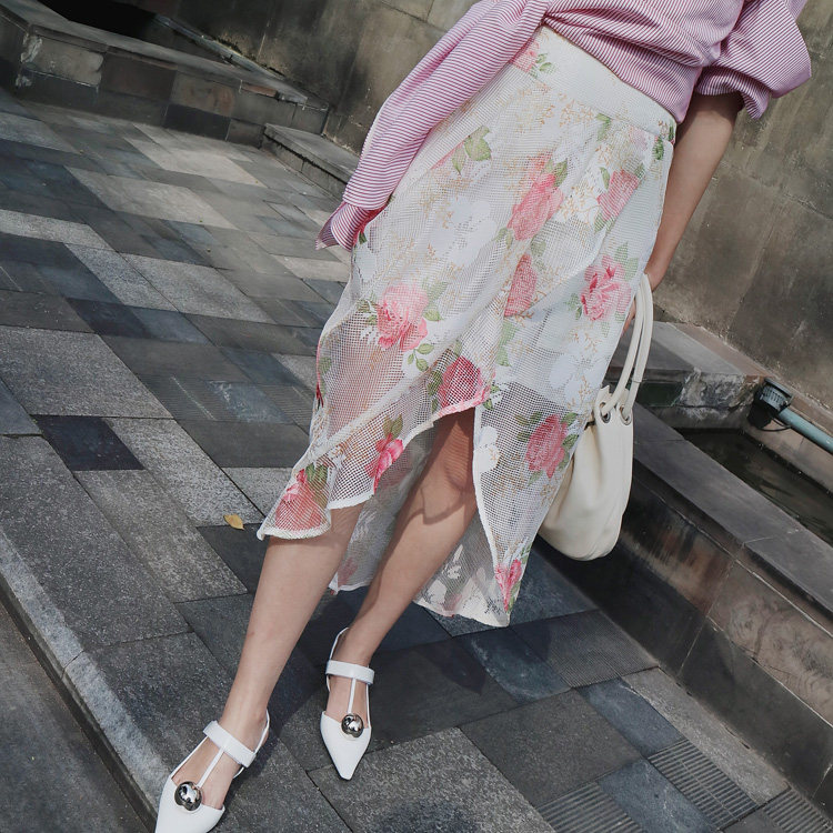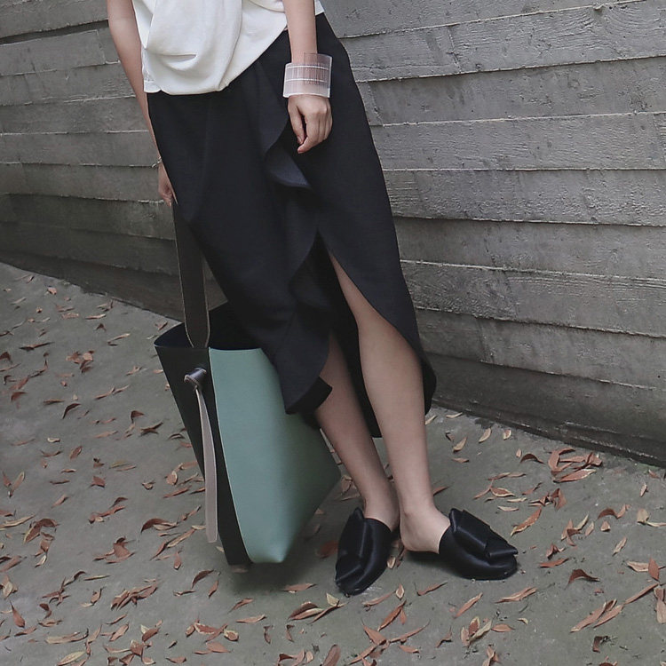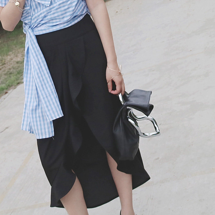 (LAMBO EXCLUSIVE@SPECIAL) Asymmetric slit wavy skirt
