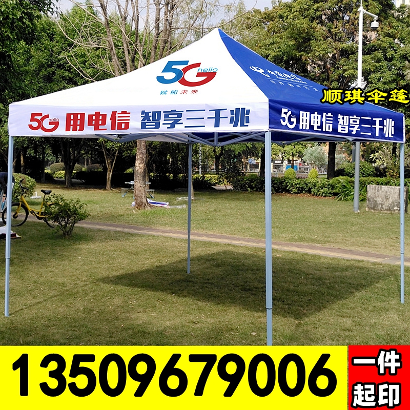 China Telecom 5G tent umbrella cloth custom telecom advertising folding tent awning outdoor activities four-legged square umbrella