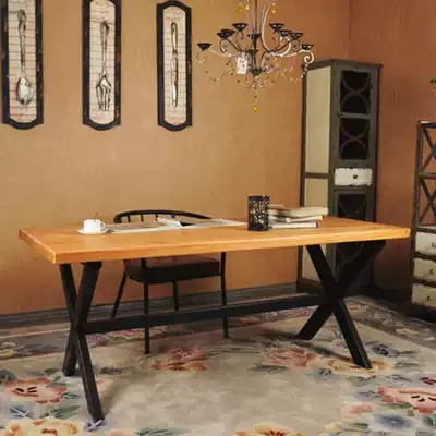 American retro Wrought iron dining table and chair Solid wood conference table Leisure class desk Computer table workbench long table