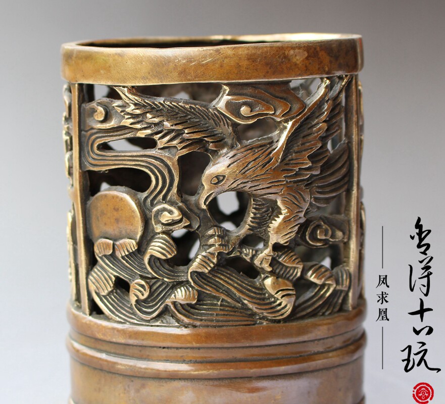 Xie de Brass Antique Pure Copper Dapeng Wing Pen Holder Home Decoration Office Guest Business Gifts